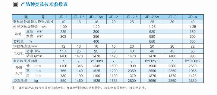 JD-1.6A、JD- 2.5A兩個規(guī)格的產(chǎn)品,在結(jié)構(gòu)上增加了電力液壓推動器作為安全制動,保證絞車使用更為安全可靠。